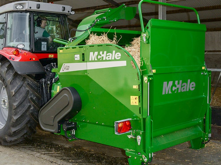 Der McHale C430 ist eine 3-Punkt Maschine, die für Landwirte entwickelt wurde, die in beengtem Arbeitsraum beim Füttern und Einstreuen arbeiten.