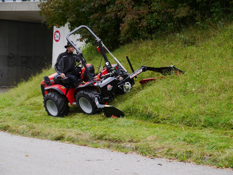 - Höchste Sicherheit: Ein vollgeschützter Antrieb sowie eine innenliegende Schlauchführung schützen die Technik auch in schwierigem Gelände. Ein einstellbares Druckbegrenzungsventil bewahrt das Schneidwerk zudem zuverlässig vor Schäden bei Überlast.