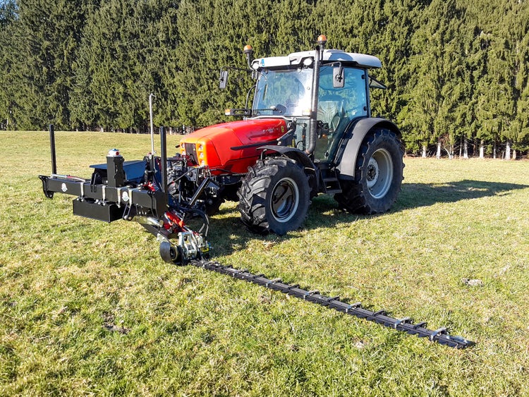 Was das FRONT STANDARD Modell besonders auszeichnet, ist die seitliche Verschiebbarkeit des Schneidwerks auf dem Rahmen. Dies ermöglicht eine einfache und präzise Anpassung an die Spur Ihres Trägerfahrzeugs. Für zusätzliche Flexibilität bei der Einsatzplanung ist das Mähwerk zudem wahlweise als Rechts- oder Linksausleger erhältlich.