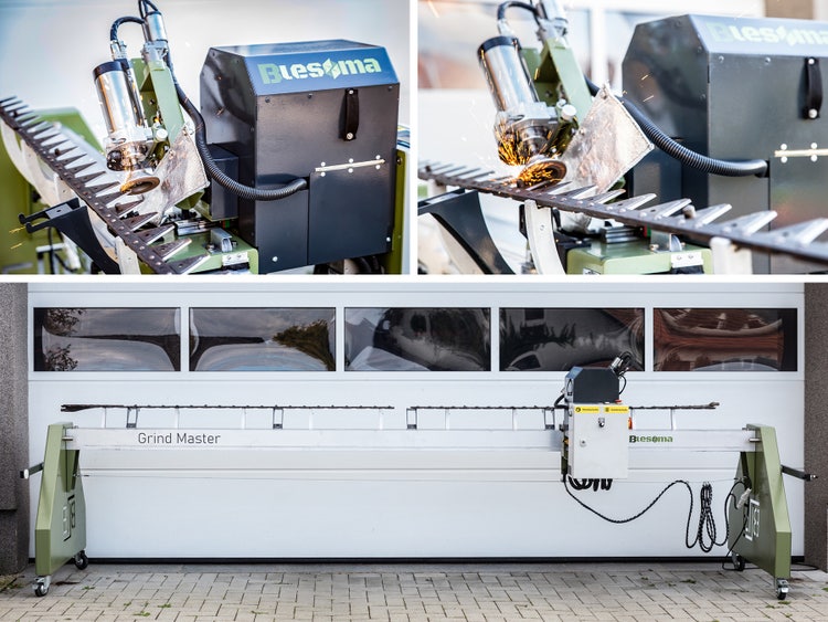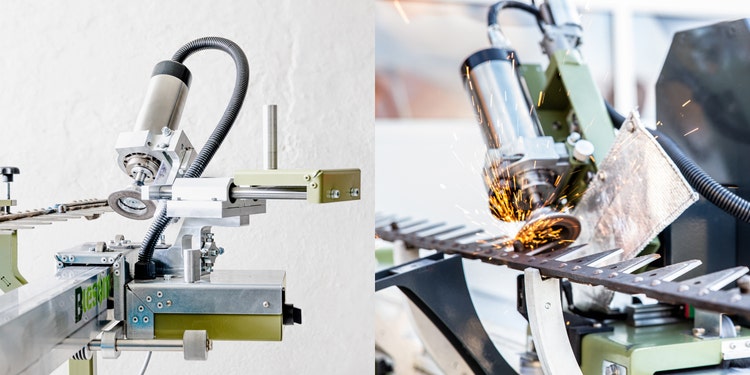 - Präzision für jede Klinge: Jede Klinge wird individuell geschliffen. Dabei ist der Materialabtrag an jeder Klinge gleich, ganz gleich, ob eine neue Klinge neben einer alten sitzt – es wird immer nur so viel wie nötig abgeschliffen.