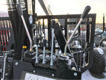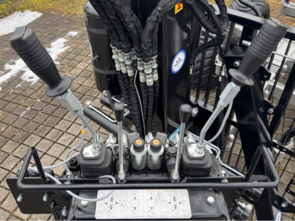 2 XY-Funktionen plus zwei elektrische Funktionen mit Wippenschaltern auf den Hebeln, sowie zwei separate mechanische Funktionen (Abstüzungen)