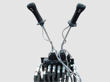 2 XY-Funktionen plus 4 elektrische Funktionen über Druckknöpfe an der Vorder- und Rückseite der Hebel
