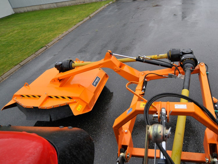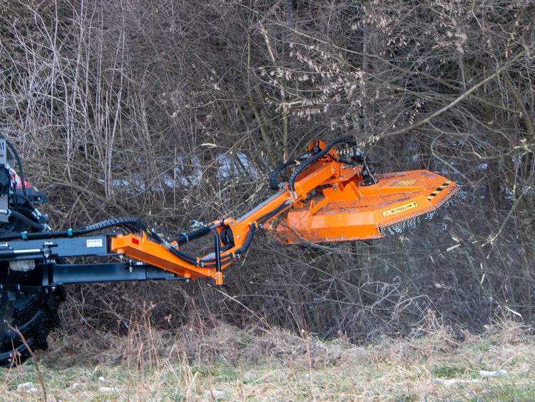 - Hydraulische Aufprallsicherung, die bei Hindernissen den Mulcher automatisch hebt und schützt.