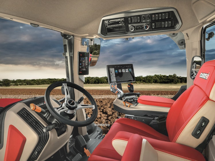 Die Optum AFS Connect Modelle verfügen über eine komplett neue Kabine, die mit hochmodernen technischen Lösungen einen unübertroffenen Komfort bietet. Der Geräuschpegel in der Kabine beträgt branchenführende 66 dB(A), was sie zu einem der leisesten Traktoren am Markt macht. Für eine intuitive Steuerung sind die Modelle mit der neuen Multicontroller-Bedienarmlehne ausgestattet, über die 95 % der am häufigsten verwendeten Funktionen in Griffweite liegen und individuell belegt werden können. Das AFS Vision Pro Betriebssystem mit dem AFS Pro 1200 High-Definition (HD) Monitor ermöglicht eine intuitive Bedienung wie ein Smartphone oder Tablet. Für maximalen Fahrkomfort ist optional eine semiaktive Kabinenfederung mit drei Niveaus erhältlich, ebenso wie ein aktiv gefederter Fahrersitz oder ein belüfteter Premium-Ledersitz.